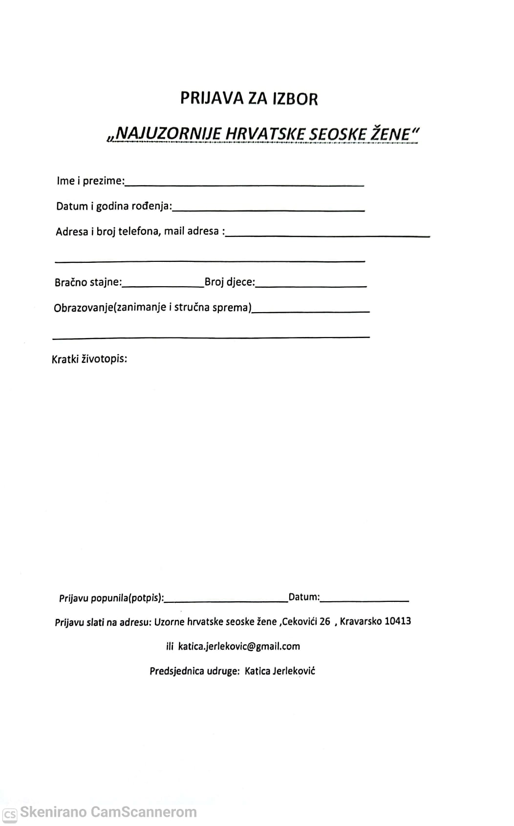 Obrazac za prijavu na Izbor najuzornije hrvatske seoske žene